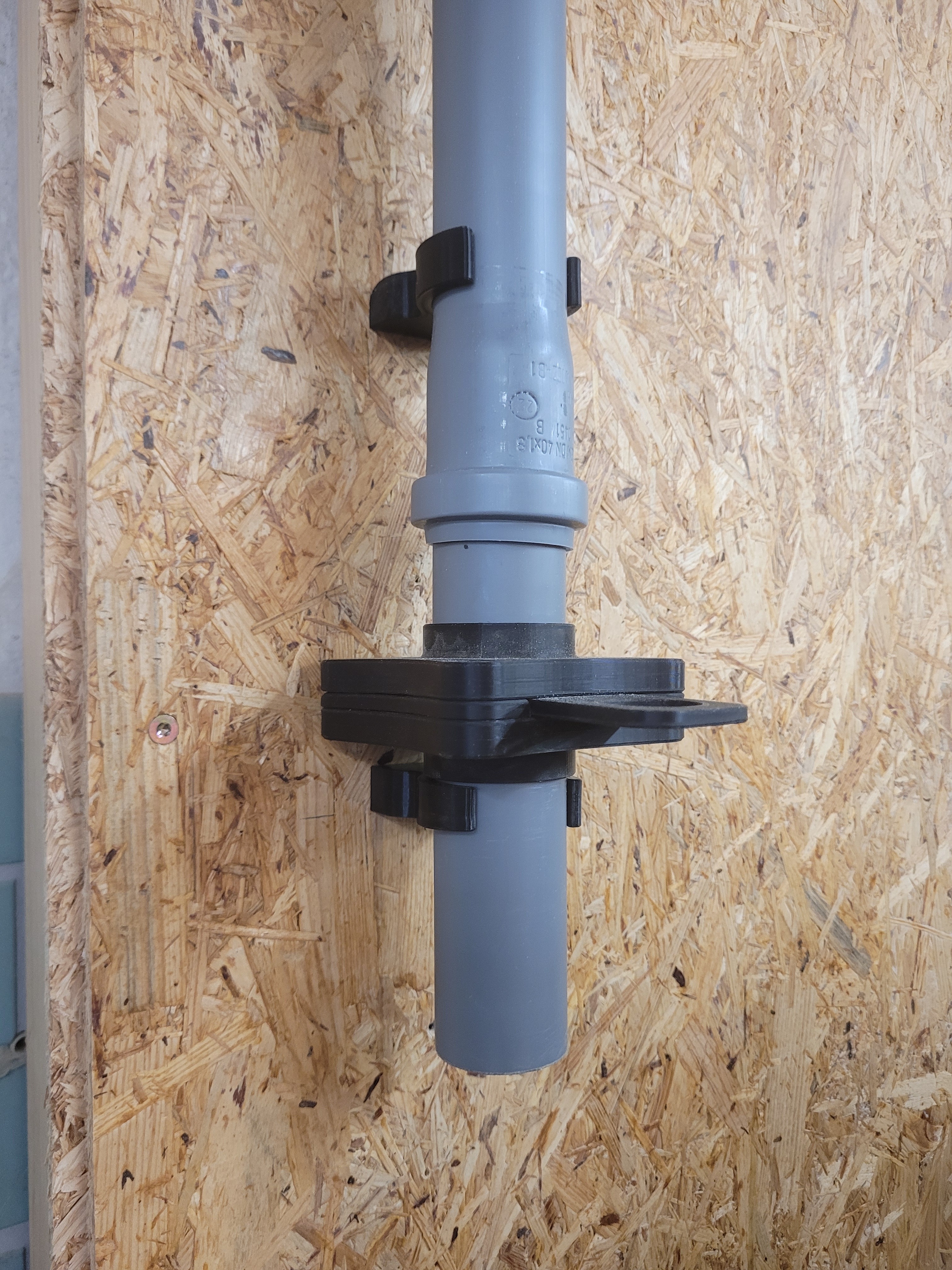 Rohrklemme kann einfach an die Wand geschraubt werden und das Rohr wird anschließend einfach aufgeklickt.