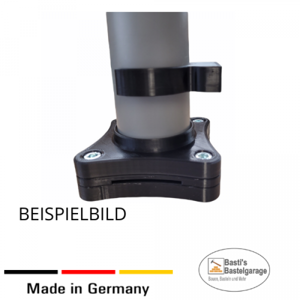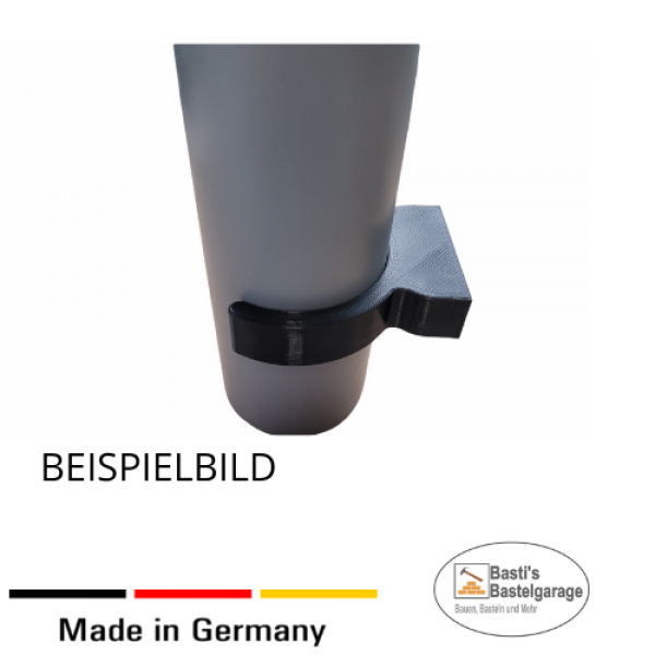 Rohrklemme kann einfach an die Wand geschraubt werden und das Rohr wird anschließend einfach aufgeklickt.